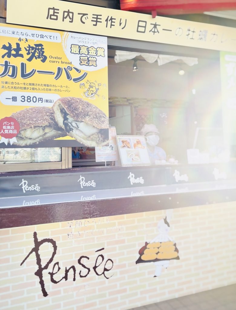 下の写真は、宮城県の松島へ行ったときに見かけてびっくりした、牡蠣カレーパンです。
